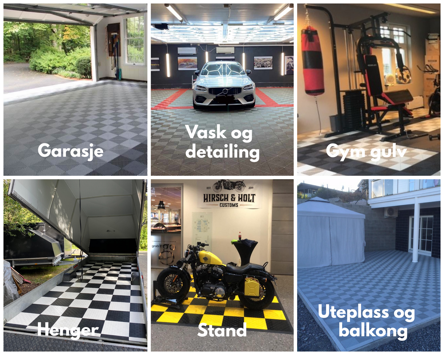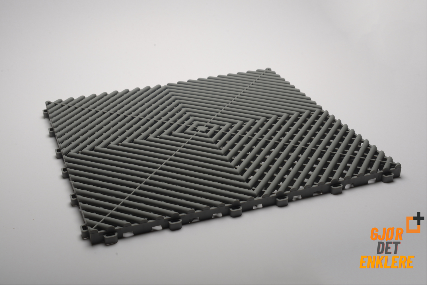 Våre gulvfliser bidrar til å beskytte gulvet ditt og kan dekke for ujevnheter. Flisene gjøres rene med vanlig vaskemidler eller støvsuging.